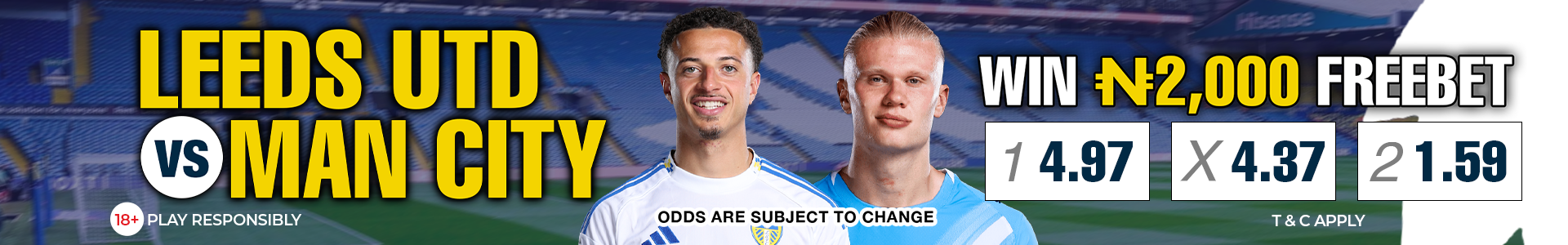 Bet on Leeds United vs Manchester City - Get a ₦2,000 Free Bet if You Lose!